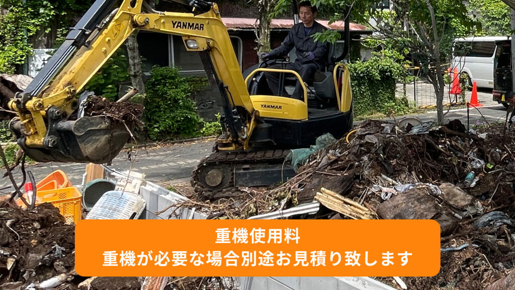 重機を用いて解体をする場合、重機使用代を頂戴しております。