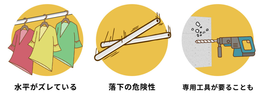 ハンガーパイプの取り付けには、見落としがちなリスクが潜んでいます。例えば