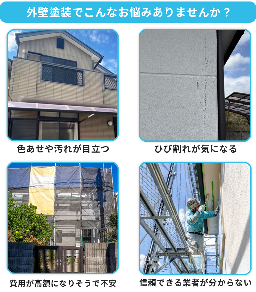 外壁は日々の雨風や紫外線で少しずつ傷んでいきます。「色あせが気になる」「ひび割れを放置して大丈夫?」と感じても、どこに頼めばいいのか分からず不安に思う方も多いのではないでしょうか。